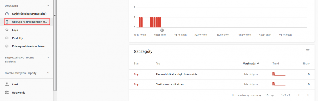 Ewentualne błędy wersji mobilnej również sprawdzisz w narzędziu Google Search Console w zakładce