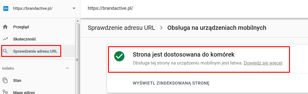 W Google Search Console, możemy sprawdzić, czy dana podstrona jest dopasowana do urządzeń mobilnych.