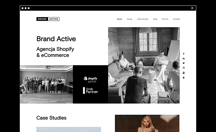 Brand Active - agencja Shopify & eCommerce Nowy claim jest następstwem naszej strategii, którą realizowaliśmy w 2020 roku i na którą stawiamy w kolejnych latach. “eCommerce” to część rynku, na którym się skupiamy i rozwijamy nasze kompetencje. “Shopify” to cały ekosystem, który jest dla nas podstawowym warsztatem do rozwoju sklepów internetowych na całym świecie.