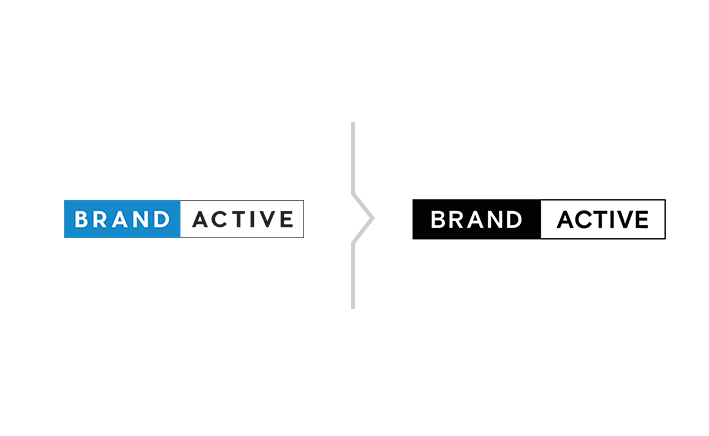 Logo Brand Active w swoim założeniu miało być ponadczasowym elementem firmy. Zmieniając podejście do projektowania oraz wychodząc naprzeciw aktualnym trendom na rynku, postanowiliśmy nie zmieniać całości koncepcji, lecz skupić się na najważniejszych aspektach takich jak kolor, krój fontu oraz jego przyszłe zastosowanie. Dotychczasowe logo bazowało na kolorze niebieskim oraz czarnym na kształcie prostokąta z wpisanymi w niego wyrazami.