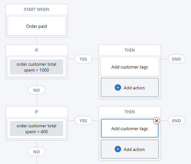 Dzięki tej automatyzacji możesz tagować klientów, którzy osiągają określony przez Ciebie pułap wydatków w Twoim sklepie. Na podstawie automatycznie przypisanych tagów do klientów mogą trafiać różne komunikaty, rekomendacje produktów lub kody rabatowe czy specjalne niespodzianki. Utrzymanie swoich najlepszych kupujących oraz zwiększenie ich lojalności może przynieść tylko pozytywy dla Twojego e-commerce. Automatyczna segmentacja klientów pozwoli zaoszczędzić sporo czasu, jednocześnie dostarczając Ci niezbędne dane do wykorzystania w budowaniu dalszych relacji z kluczowymi klientami.